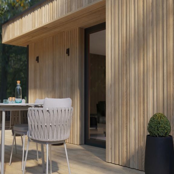 Фасадні дошки Envello Board & Batten+ мають різні кути нахилу для створення чіткості тіні між візерунками текстури дерева, а також полегшення дренажу при горизонтальному використанні. Збільшена товщина фасадної дошки Envello Board and Batten+ забезпечує чудову ударостійкість.