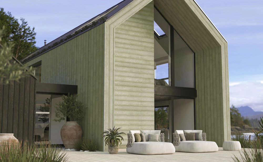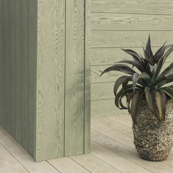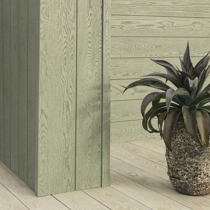 Фасадна дошка Millboard Envello Shadow Line+ в кольорі Sage Green нагадує свіже весняне листя і вносить нотку органічної елегантності в будь-який простір.