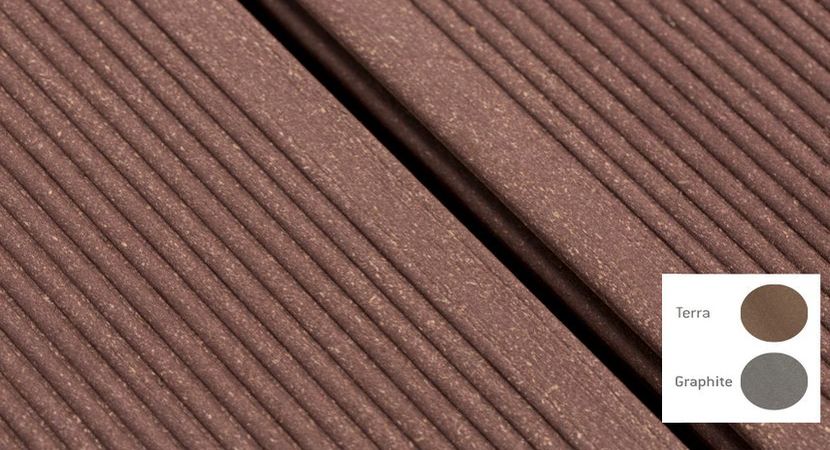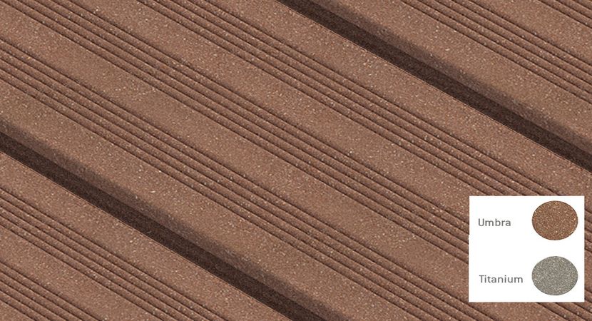 Дошки EasyDeck® TREND доступні у кольорах: terra brown та graphite; Umbra та titanium