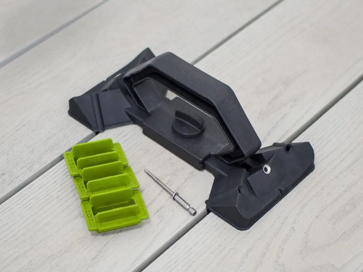 Направляюча для бокової фіксації DuoFix™ дозволяє кріпити дошки збоку, створюючи приховану фіксацію.