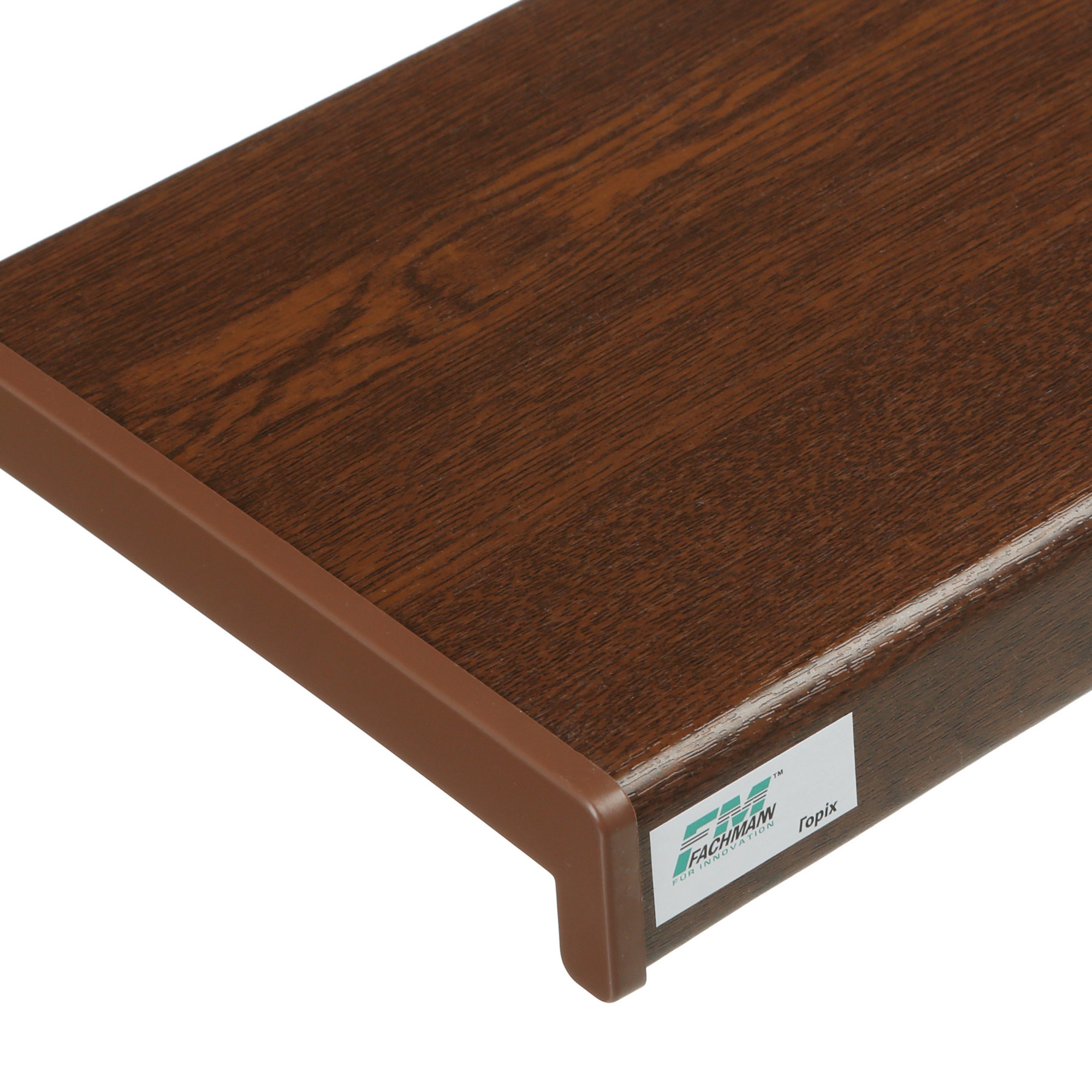 Підвіконня Fachmann покриваються ламінаційними плівками IMAWELL та ELESGO on Top. Ці плівки досить стійкі до впливу прямих сонячних променів, також відрізняються стабільністю форми та відносно високою міцністю. А класичний дизайн капіноса та гладка поверхня зробили це підвіконня актуальним у будь-якому інтер'єрі.