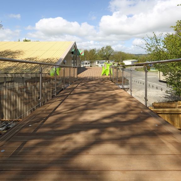 Красива текстура деревини, як і раніше, добре видно, а текстуровані смуги забезпечують безпеку. Ідеально підходить для областей, де безпека має першорядне значення, але зовнішній вигляд також важливий.