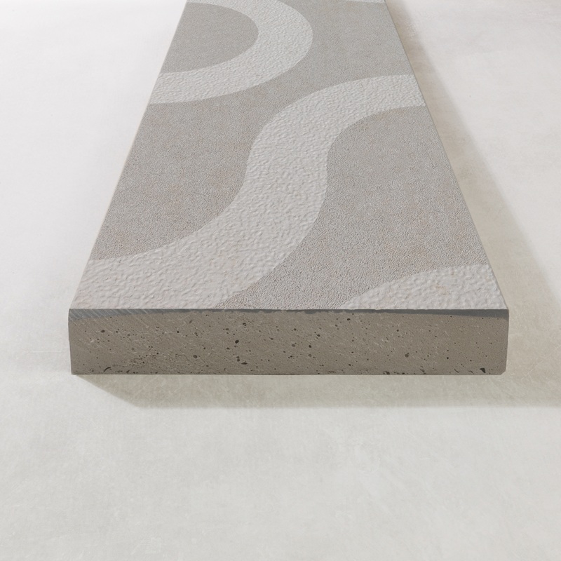 Надихаючий рух і плинність. Візерунок Curve ідеально підходить для зональних ділянок, в якості окремих композицій або в якості яскравого центрального елемента для всієї тераси. Його виразна хвилястість додає відчуття глибини та артистизму, перетворюючи ваш відкритий простір на справді унікальний.